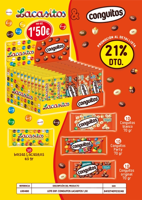 Inicio Confitería LOTES EXPO CONGUITO 70g +LACASITO 65g 1,60 E (41+9 UD)