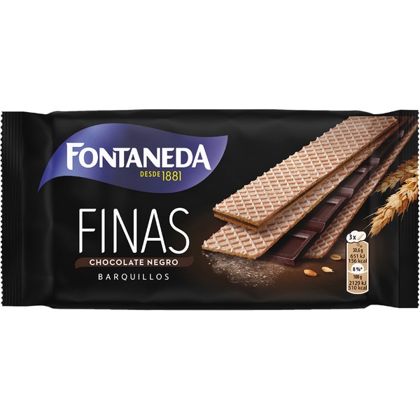 FINAS BARQUILLO CHOCO NEGRO 22×92 GR. FONTANEDA