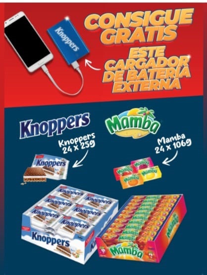 LOTE KNOPPERS+MAMBA (24x45gr+24x106gr) REGALO POWERBANK