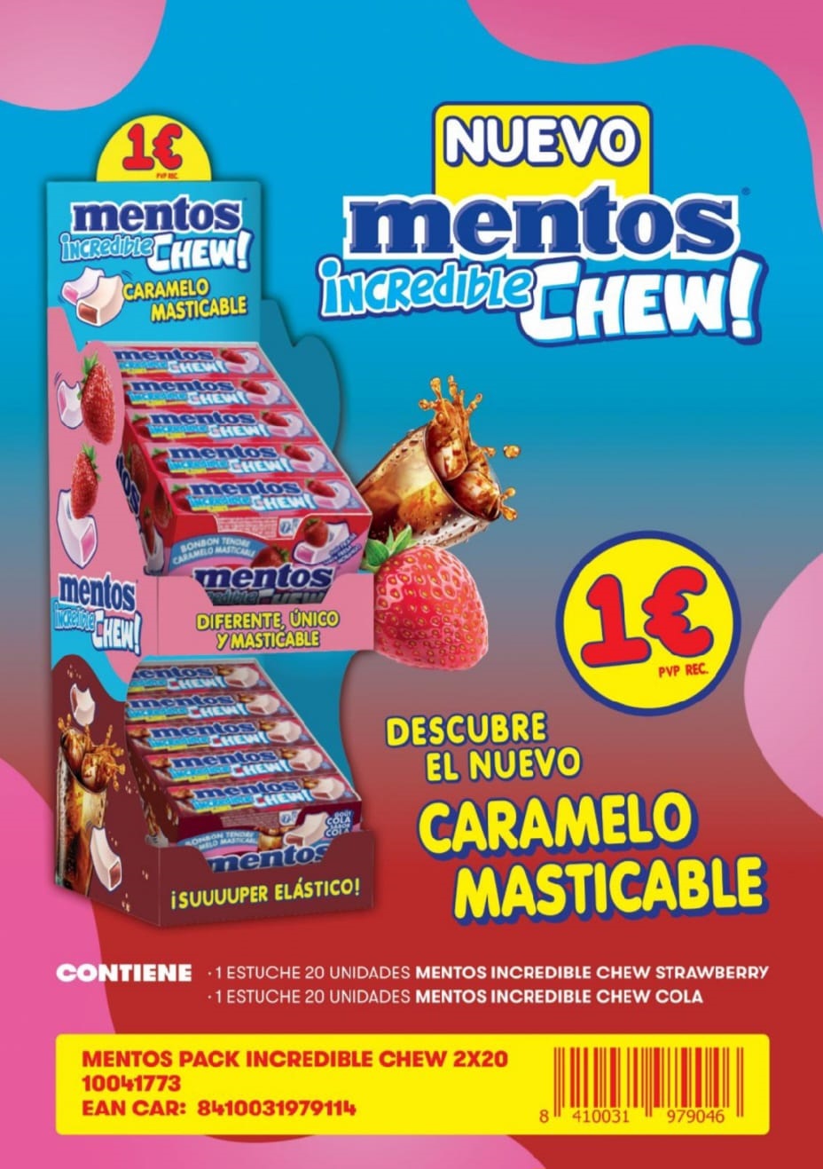 LOTE MENTOS CHEW 40u (20 FRESA-20 COLA)