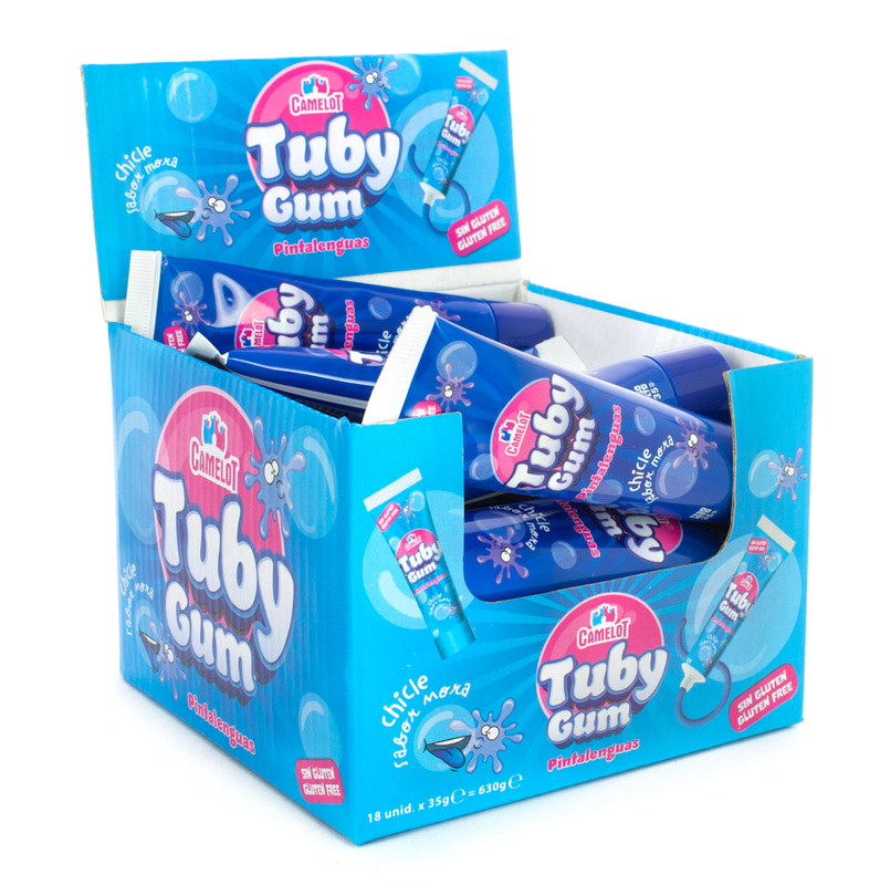 Inicio CHICLES ESTUCHADOS TUBY GUM MORA-PINTALENGUAS 18x35g CAMELOT